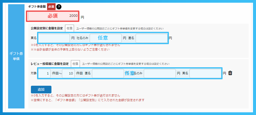 ※0を入力すると、その公開設定の方にはギフトカードが送付されません。