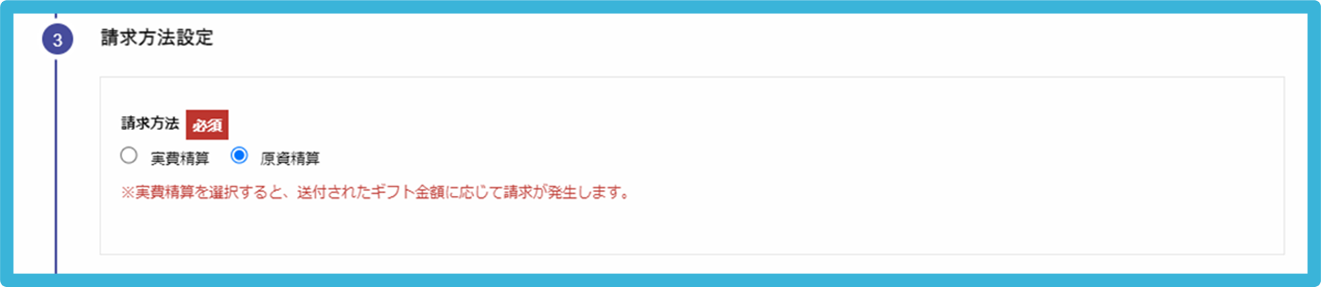 ・実費精算を選択すると、送付されたギフト金額に応じて請求が発生します。
