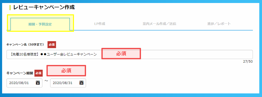 ・投稿されたレビュー(審査中、掲載保留のレビューを含む)が予算金額に達するとキャンペーンの受付が終了します。