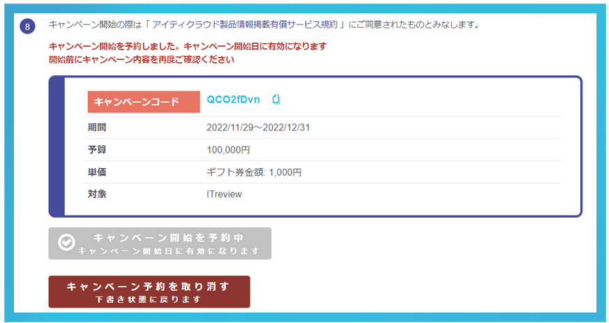 ※キャンペーン開始の際はアイティクラウド製品情報掲載有償サービス規約にご同意されたものとみなします。