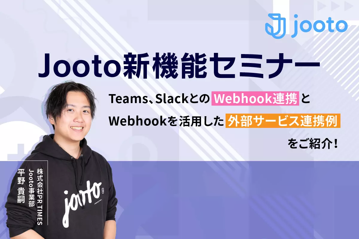 今回実装したWebhookの活用法をご紹介するセミナーを実施します。Microsoft Teams・Slackとの具体的な連携方法、Jooto Webhookを活用した外部サービス連携デモのご案内、ご参加者の二重管理に関するお悩みついての質疑応答を予定しています。Jootoを活用した業務効率化・自動化にご興味のある方はぜひご参加くださいませ。