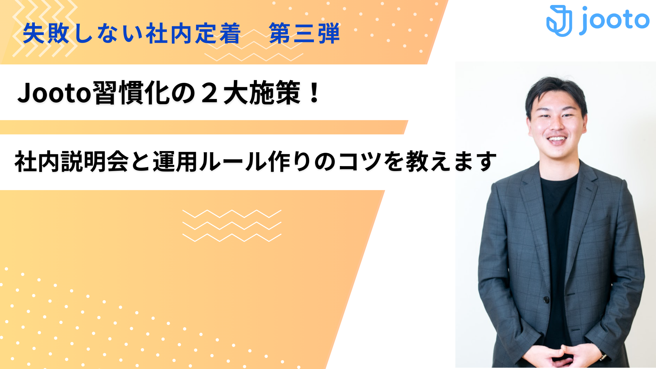 Jooto導入後にメンバーがなかなか使ってくれない、うまく浸透させられない・・・と言うお悩みがなぜ起こるのか?どう解消していくのか?といった「社内浸透」をテーマに全6回に分けwebセミナーを開催いたします。今回はその第三弾として「Jooto習慣化の2大施策!社内説明会と運用ルール作りのコツを教えます」を開催いたします。