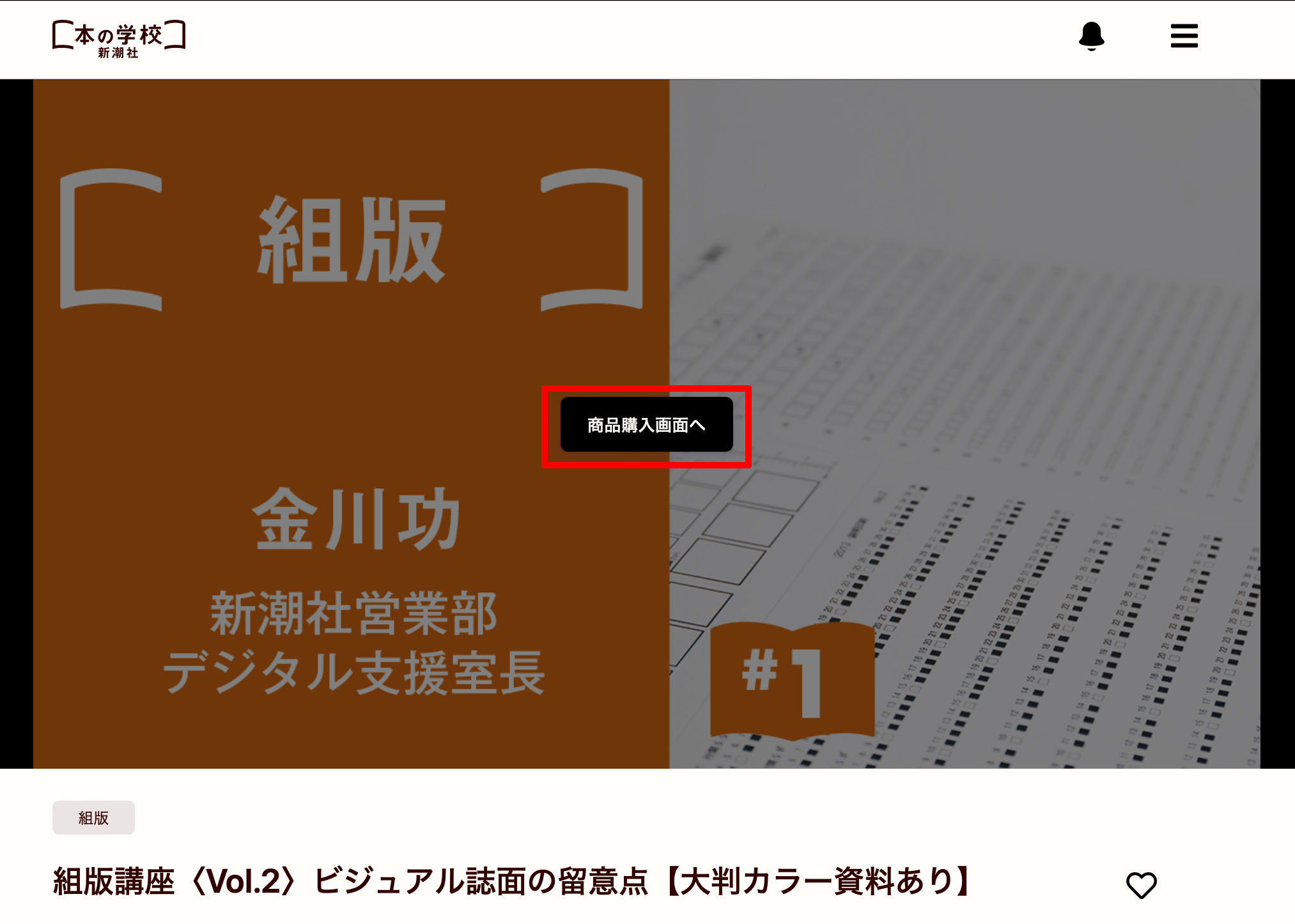 動画再生部分に「商品購入画面へ」というボタンが出てきますので、クリックもしくはタップすると購入画面へと遷移します。