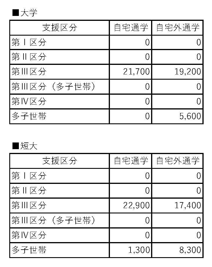 併給調整後の第一種奨学金の月額は下表をご確認ください。