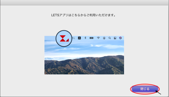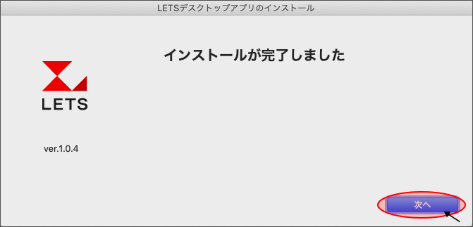 6.インストールが完了しましたら「次へ」でお進みいただき、デスクトップアプリの表示箇所をご確認の上「閉じる」で表示を閉じてください。
