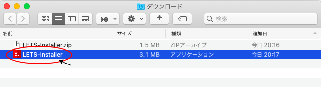 3.フォルダ内にある「LETS-lnstaller」をダブルクリックで起動してください。