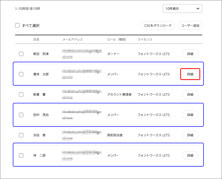 4. 削減する利用者の詳細ボタンを押してください。