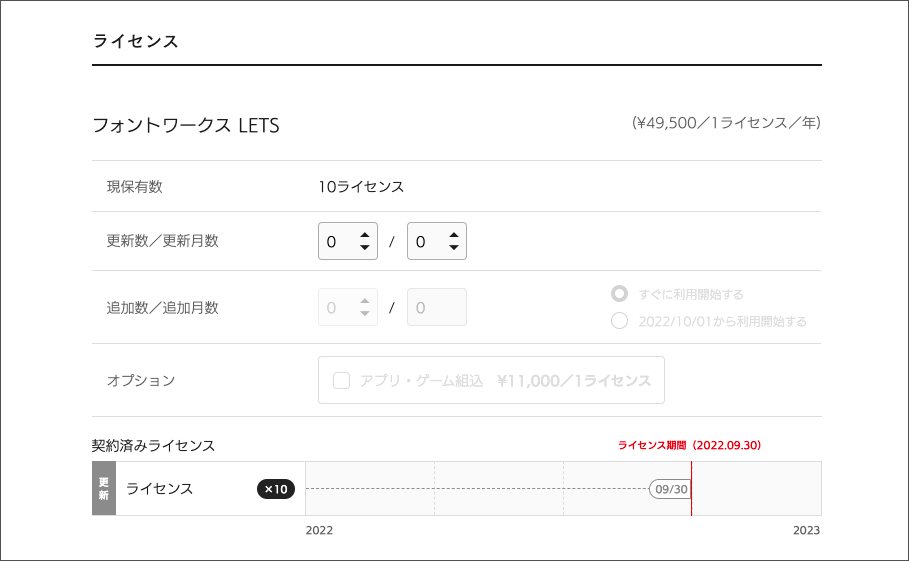 例)更新数:7ライセンス 更新月数:12ヶ月