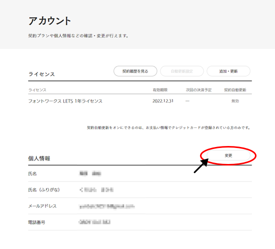 2.アカウントページの個人情報欄にある「変更」を押してください。