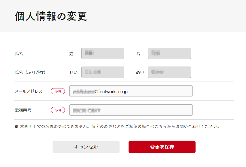 ※氏名の変更をご希望の場合はお問い合わせフォームよりご連絡ください。