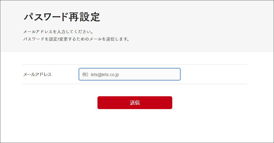 3.パスワード再設定画面にて登録中の「メールアドレス」を入力後、送信してください。