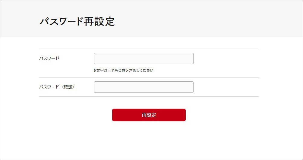 6.パスワード再設定画面にてパスワード/パスワード(確認)を入力後、「再設定」を押してください。