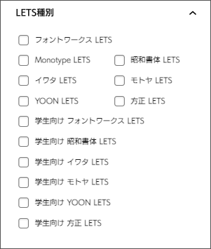 フォントワークスで提供のライセンス種別毎の絞り込みができます。