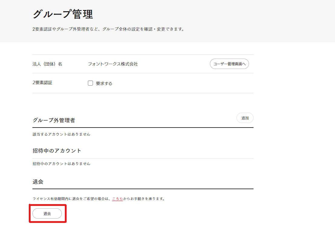管理者コンソール > グループ管理 > 退会 よりお手続きください。