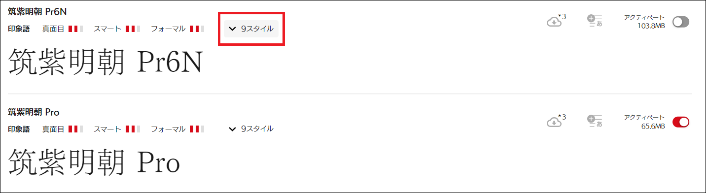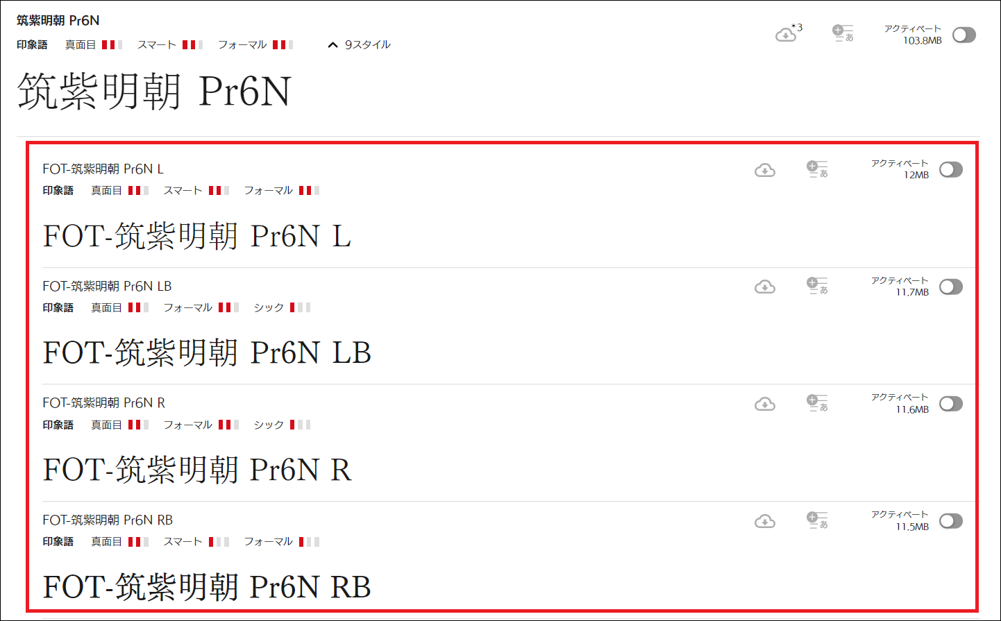 例)筑紫明朝 Pr6N:https://lets.fontworks.co.jp/fonts/12