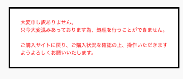 上図のような「システムエラー」が発生した場合、ご購入状況をご確認のうえ、