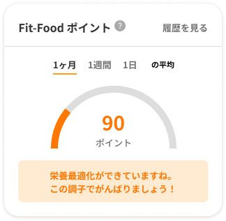 Fit-Food ポイント(FFポイント)は、1日の数値を表示するだけではなく、過去1週間や1ヶ月の平均値も表示できます。あなたの生活リズムに合わせて活用してください。