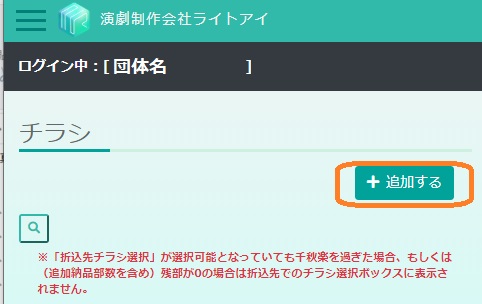 右上の「追加する」ボタンを押し、自団体のチラシの情報を登録します。