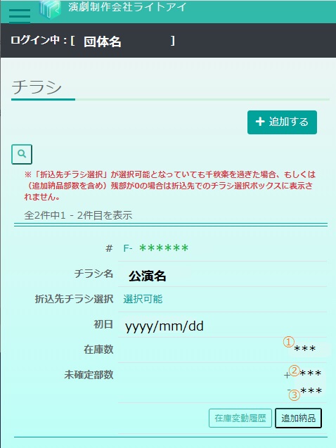 ①チラシの在庫数+②未確定部数(納品予定数)-③未確定部数(折込予定数)