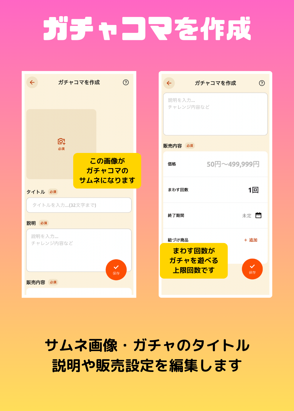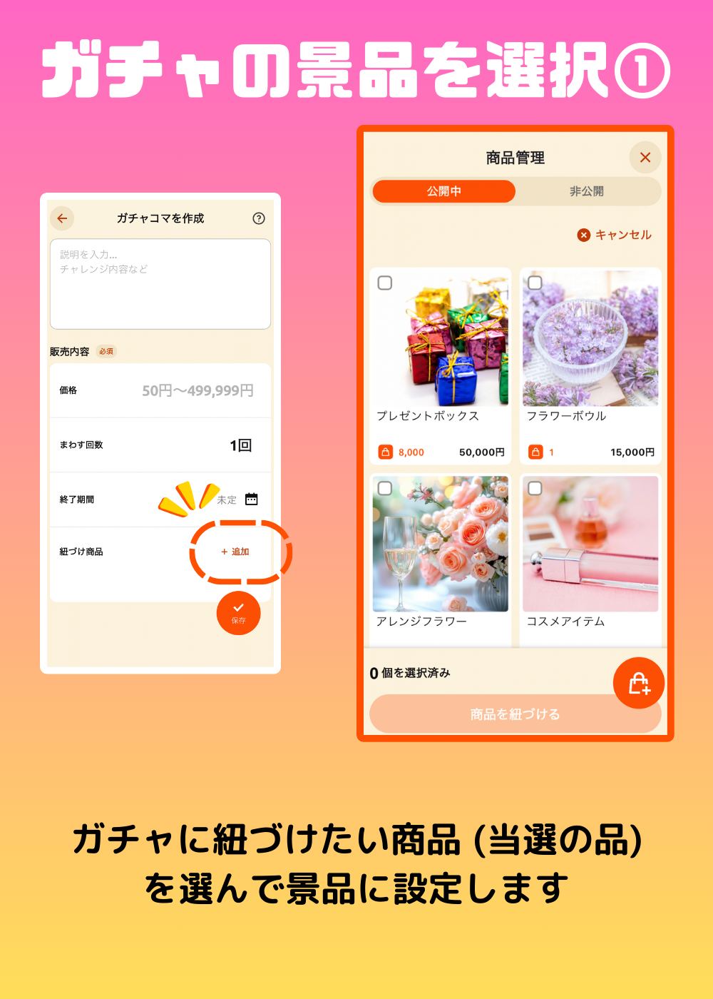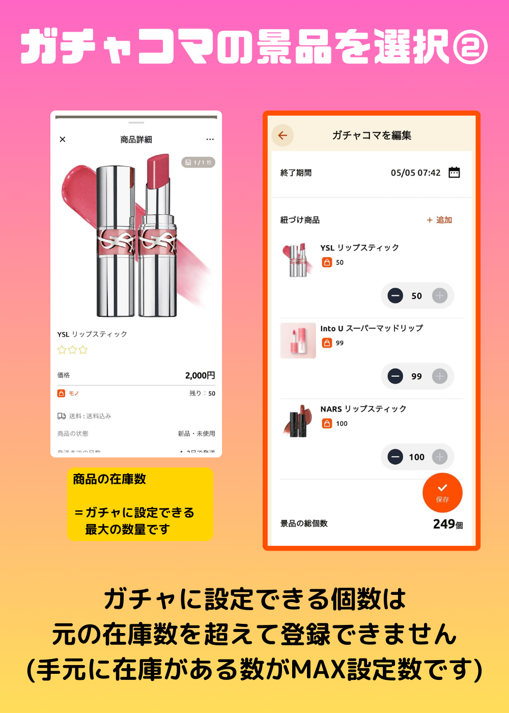 → 自分が取り扱える“モノ商品”を自由にガチャに設定できる