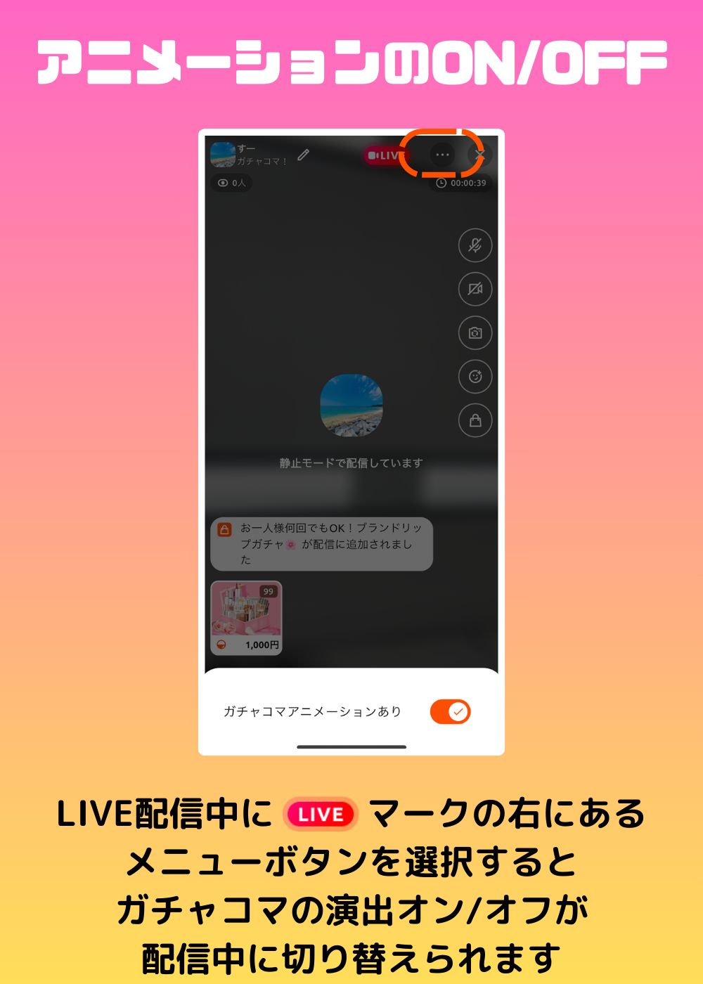 ※ ガチャ演出の表示範囲(購入者のみ/全視聴者)は、配信者が設定できます。