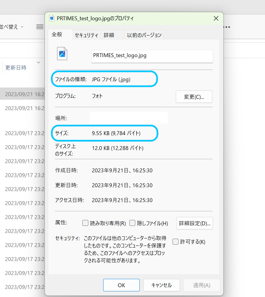 画像の形式、サイズは以下の方法で確認できます。(Windows)