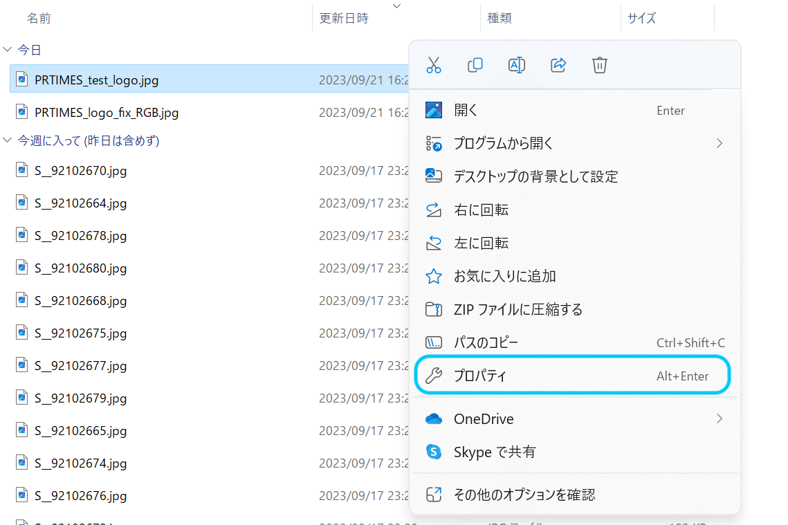 1.画像を選択、右クリックをし、プロパティを選択します。