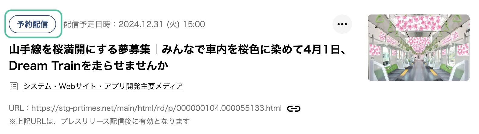 万が一の誤配信につながらないよう、予約配信の解除が正しく完了できたかどうかは、プレスリリース一覧より必ず確認しましょう。