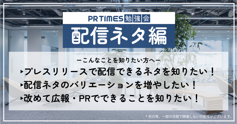 また「広報・PRを始めたばかりではないけれど、新商品のプレスリリース以外に配信のネタが見つけられていない…」など、配信の幅を広げたいという皆さまのご参加も歓迎しています