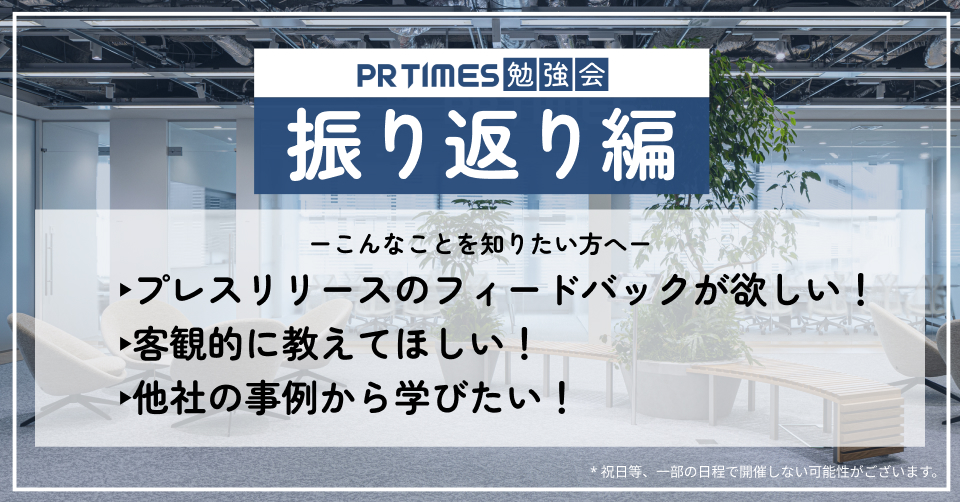 「プレスリリースを配信できた!けど実際のところ、このプレスリリースで良かったんだろうか…」そんな皆さまに向けて、過去にご配信いただいたプレスリリースについて、担当講師が直接フィードバックを行います。