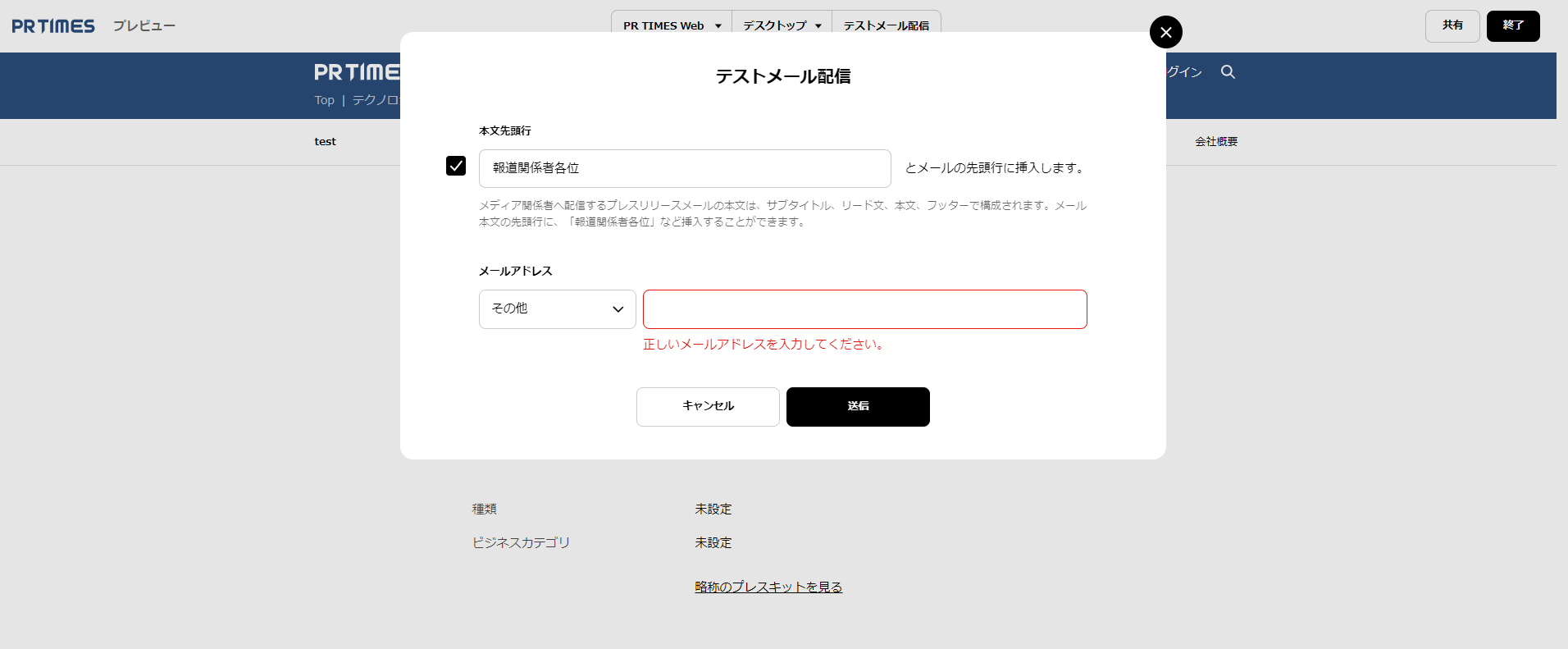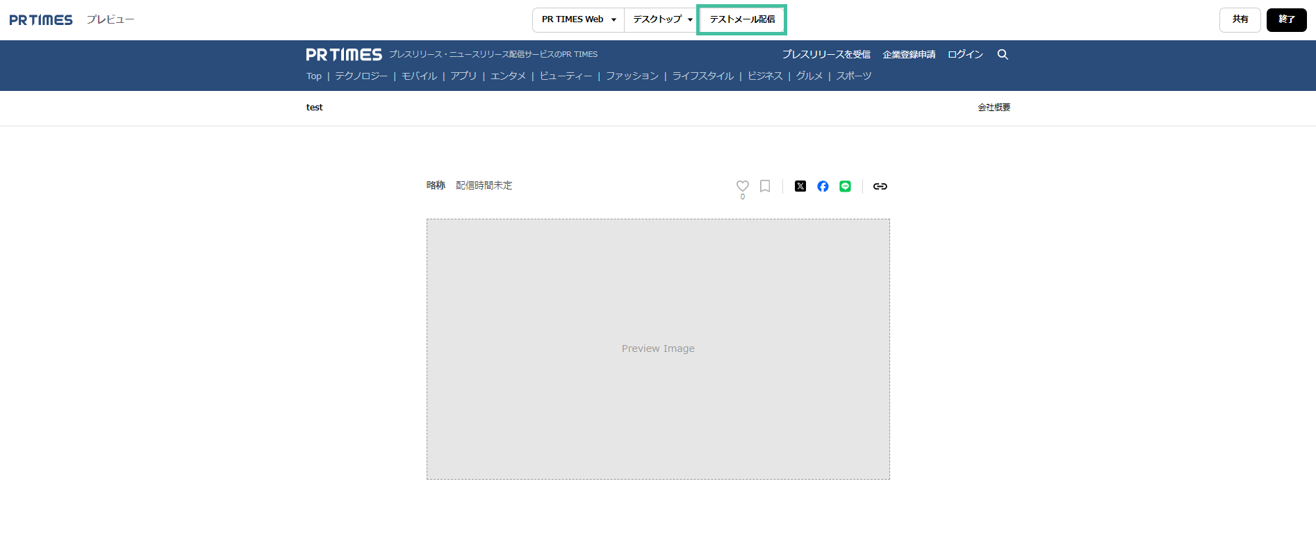 PR TIMESには、配信前のプレスリリースに表示崩れはないかなど、最終確認を行うための機能として「テスト配信」機能が備わっています。