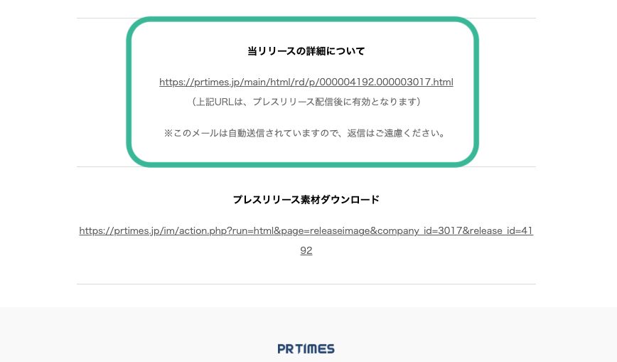 ※また、メディアリストにのみメール配信をした場合、PR TIMESにはプレスリリースの掲載を行わないため、URLは生成されません。