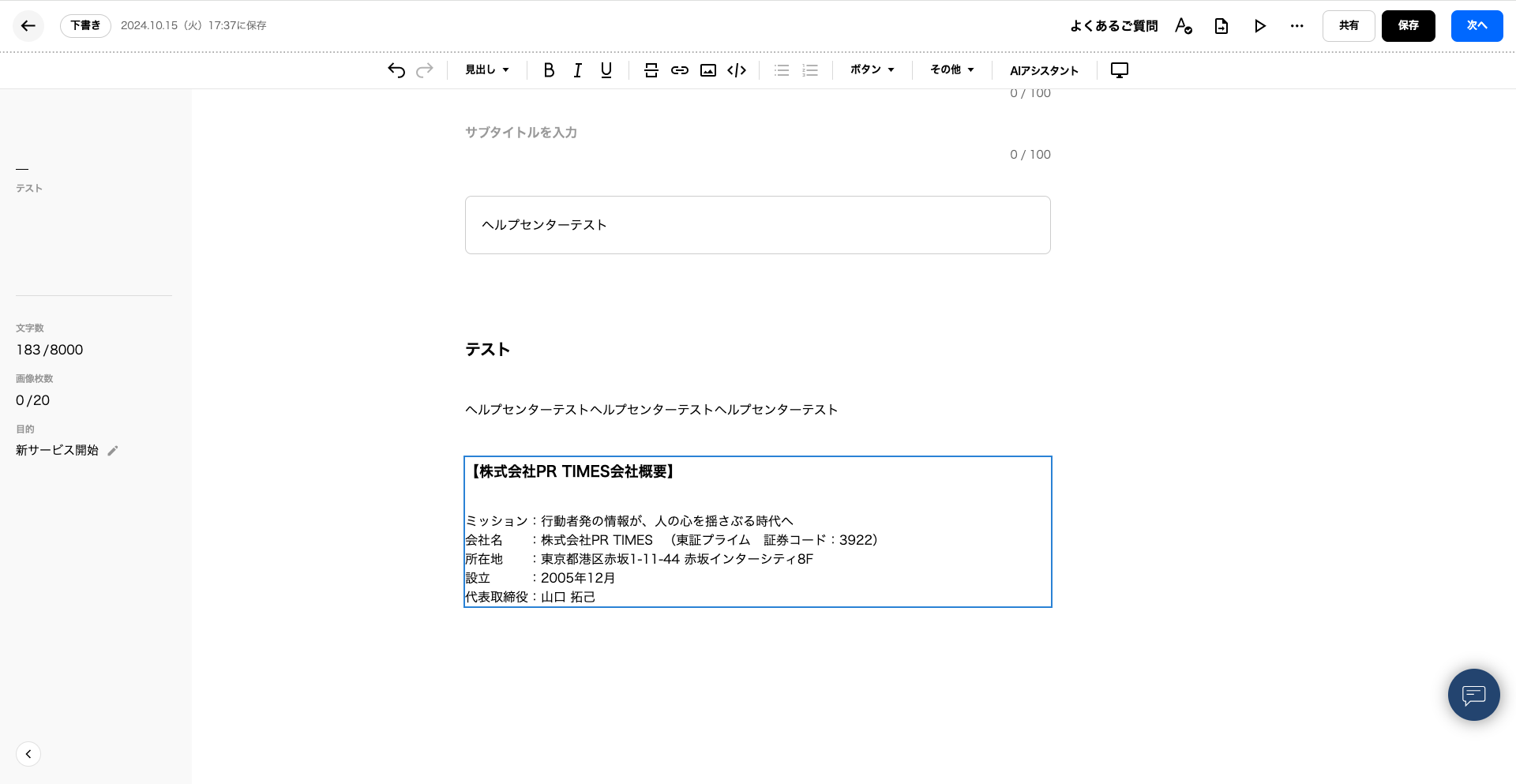 プレスリリース本文への挿入方法