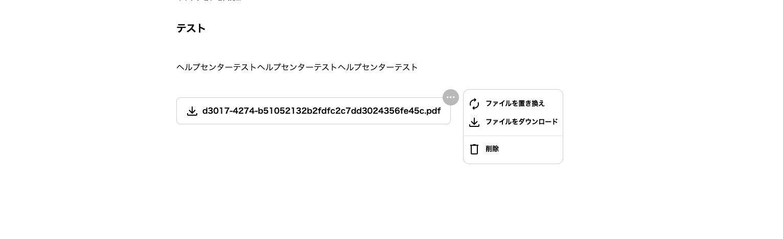 PDFファイルをアップロード後も、右上の三点リーダー「・・・」をクリックすると、挿入したファイルの置き換え・ダウンロード・削除を行うことができます。