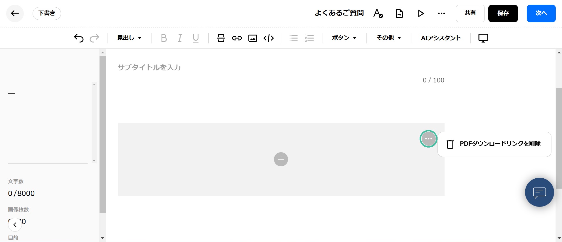 もし、一度設置したリンク挿入の枠を削除したい場合は、右上の三点リーダー「・・・」をクリックしてください。