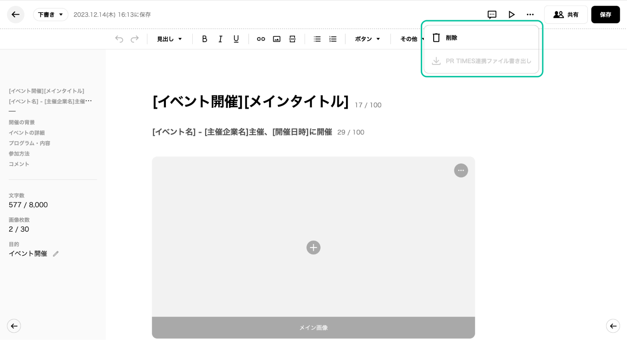 【PR Editor 公式サイト】:https://preditor.prtimes.com/