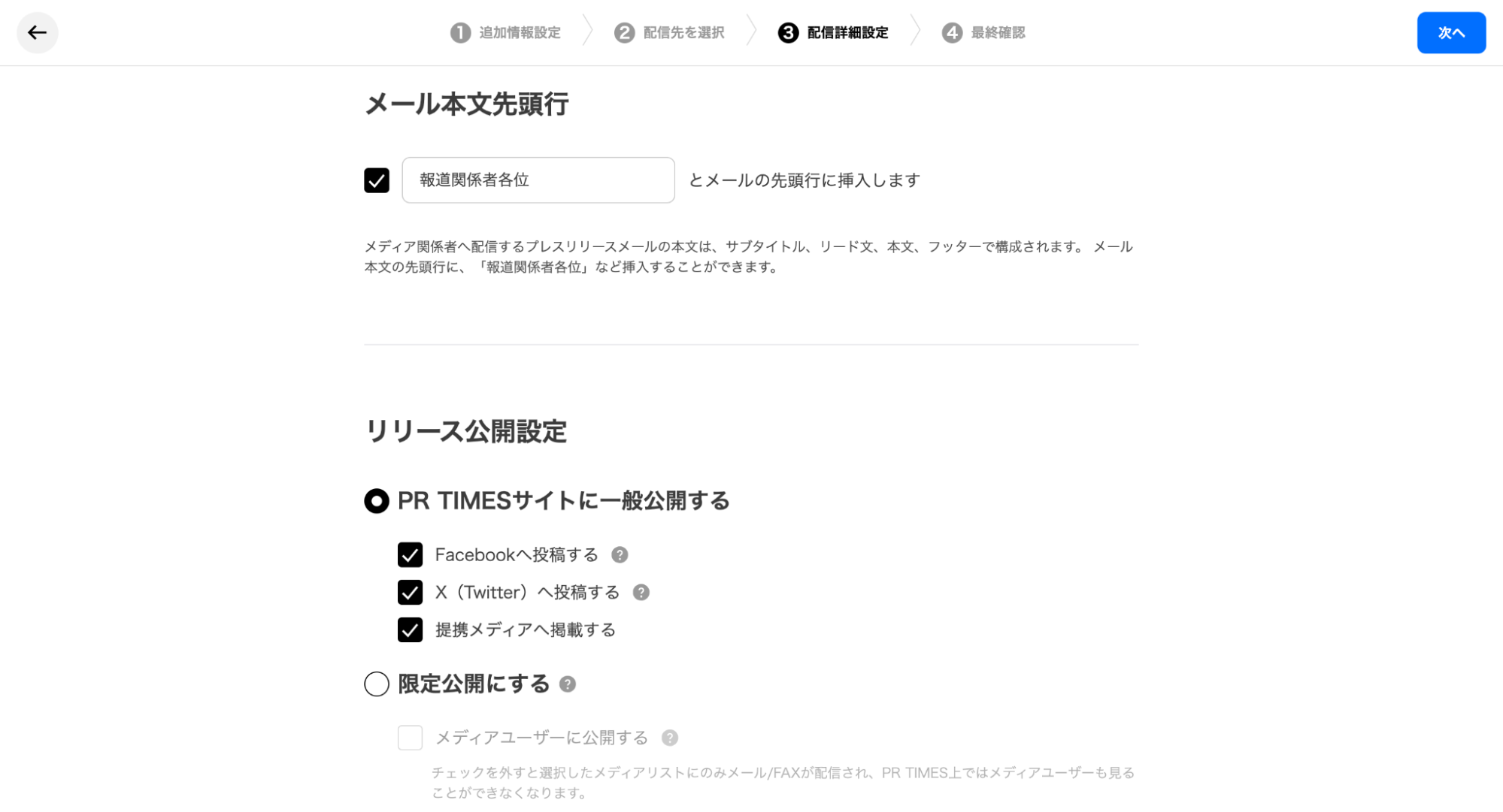 5. プレスリリースの公開設定(プレスリリースを限定公開する)