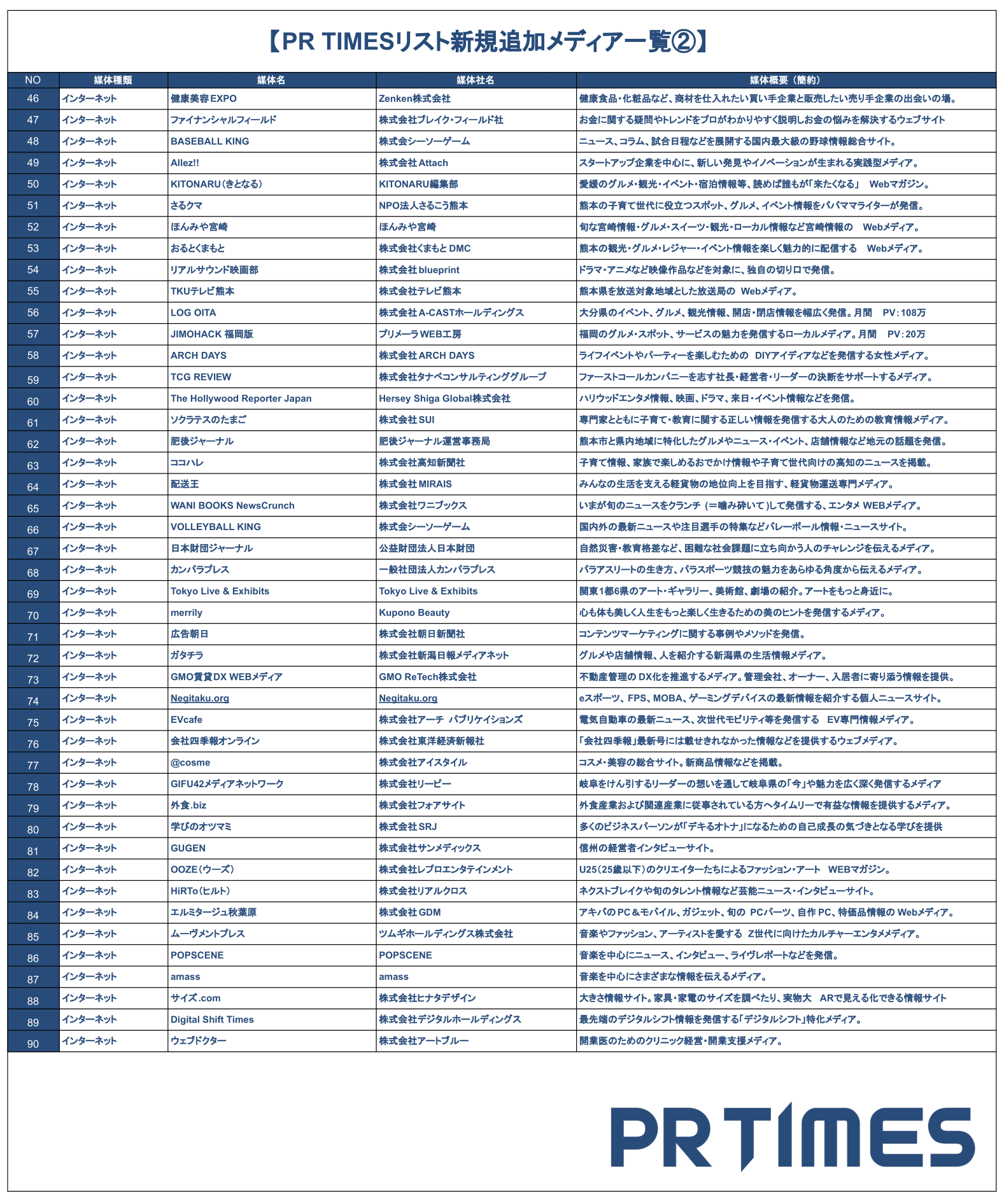 PR TIMESのデータベースにあるPR TIMESリストに、新たに90媒体を配信先メディアとして追加しました。(2024年7月時点)