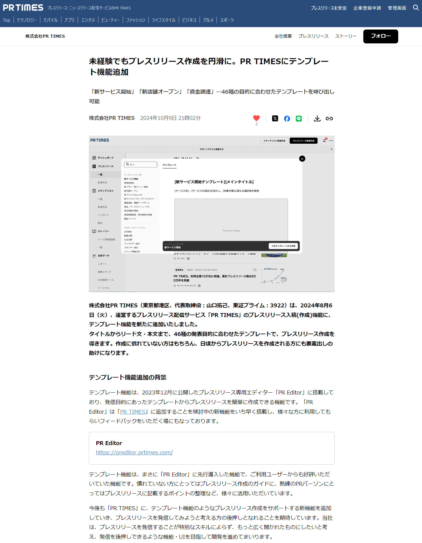 (新エディターで作成されたプレスリリースが適用の対象です)