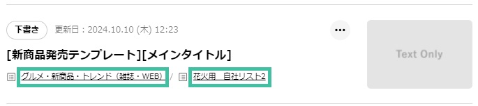 プレスリリースのタイトル下に表示されているメディアリスト名をクリックしてください。