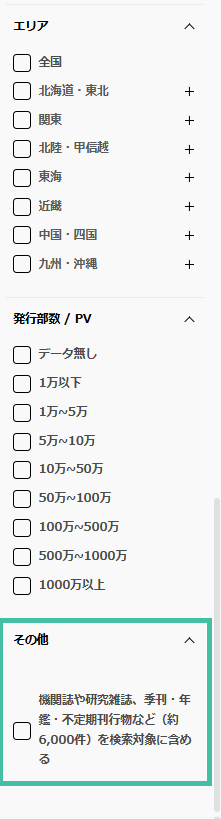 ※クリックした際には、左部分にある検索条件の「メディア種別」チェック欄も連動します。