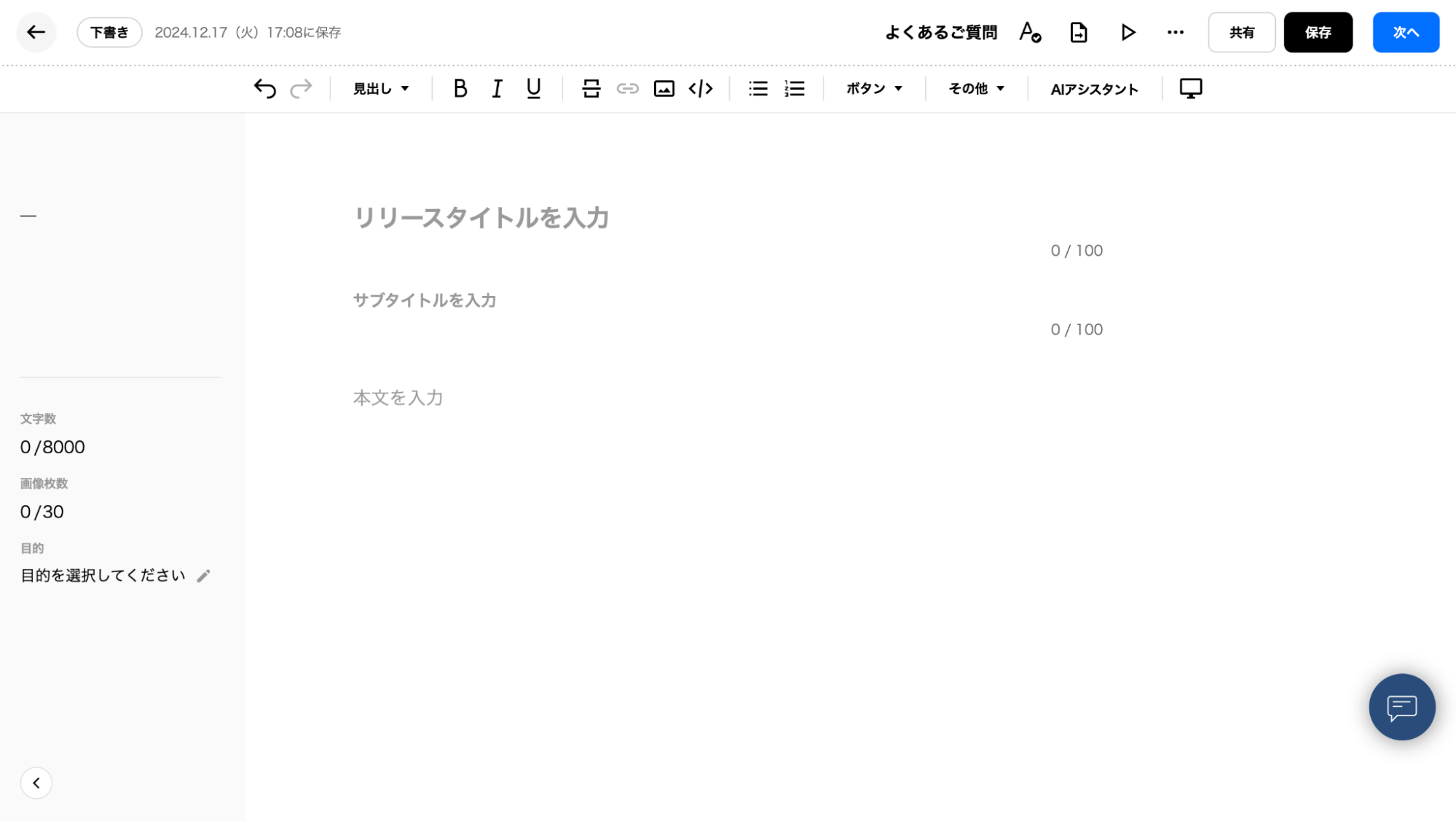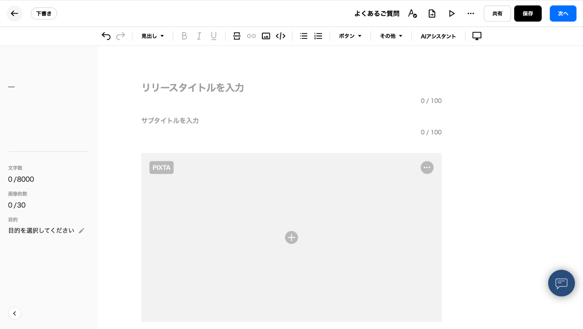 2025年1月9日、プレスリリース新規作成(立ち上げ)の際に、デフォルトで自動挿入されていた大画像枠を撤廃しました。