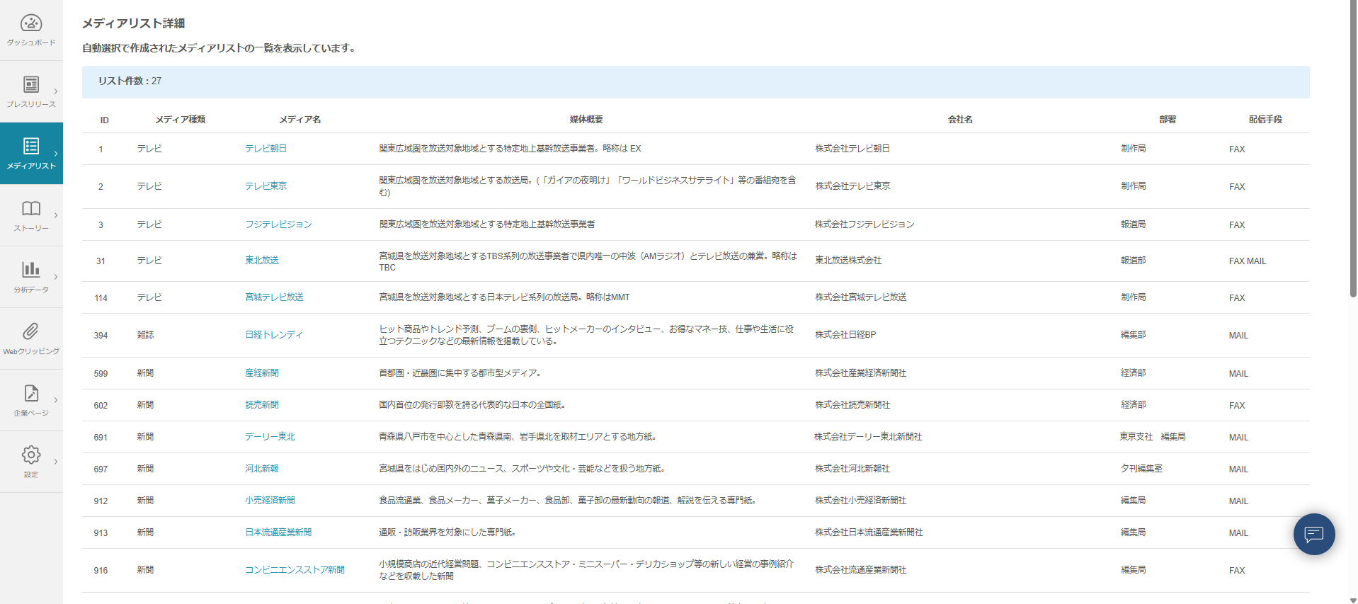 プレスリリースの配信先として設定する「メディアリスト」において、「自動選択リスト」があります。(*1)
