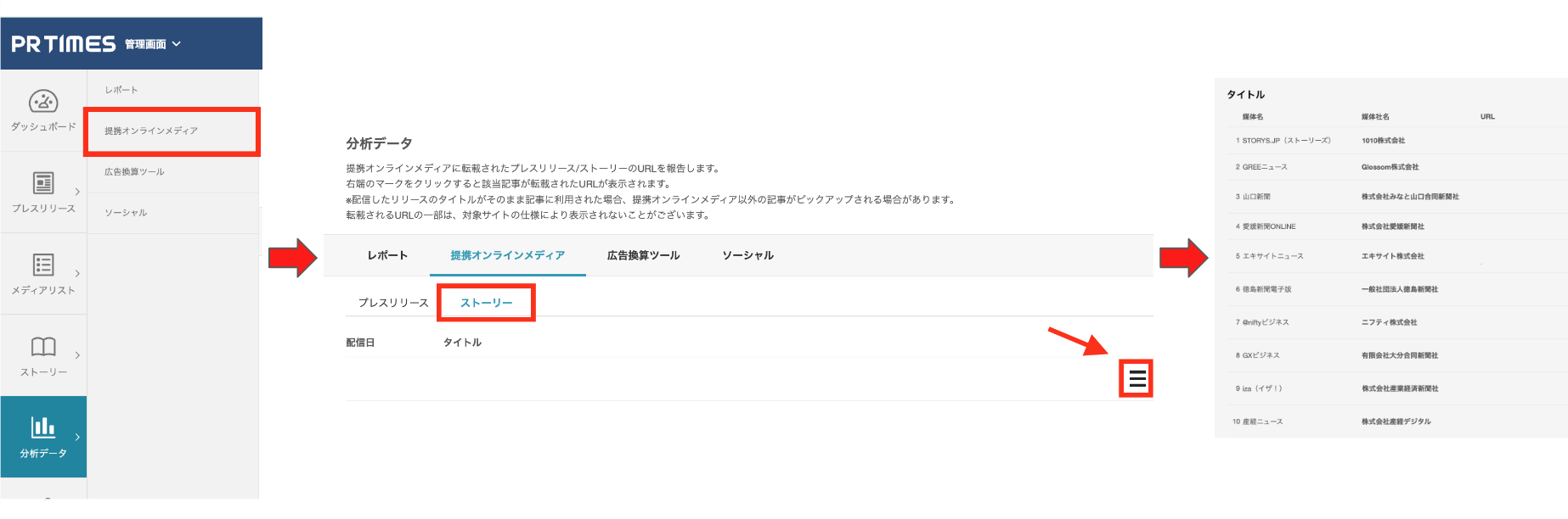 PR TIMES STORYから発信いただいたストーリーの転載先URLは、下記の手順で確認できます。