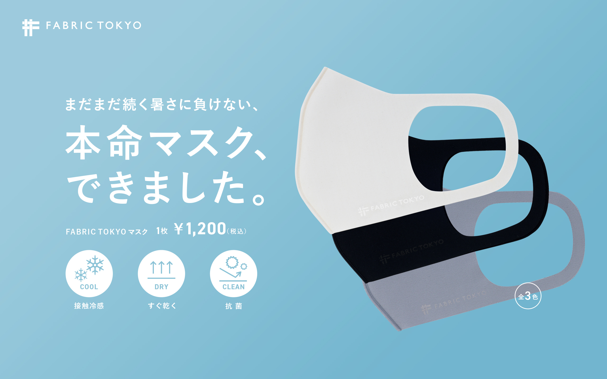 オーダースーツのFABRIC TOKYO、はたらく人を想った本命マスクを発売開始!まだまだ続く暑さに届けたい高機能マスクが1枚1,200円(税込)。