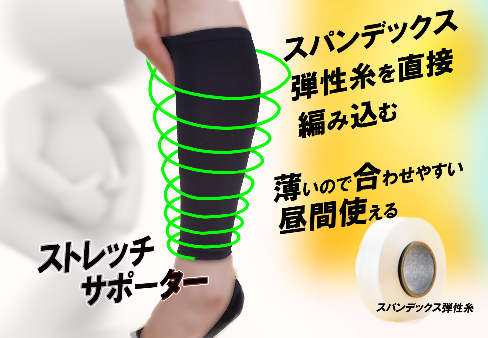 昼間に段階着圧を着用することでふくらはぎに水分を溜めないストレチニットサポーター