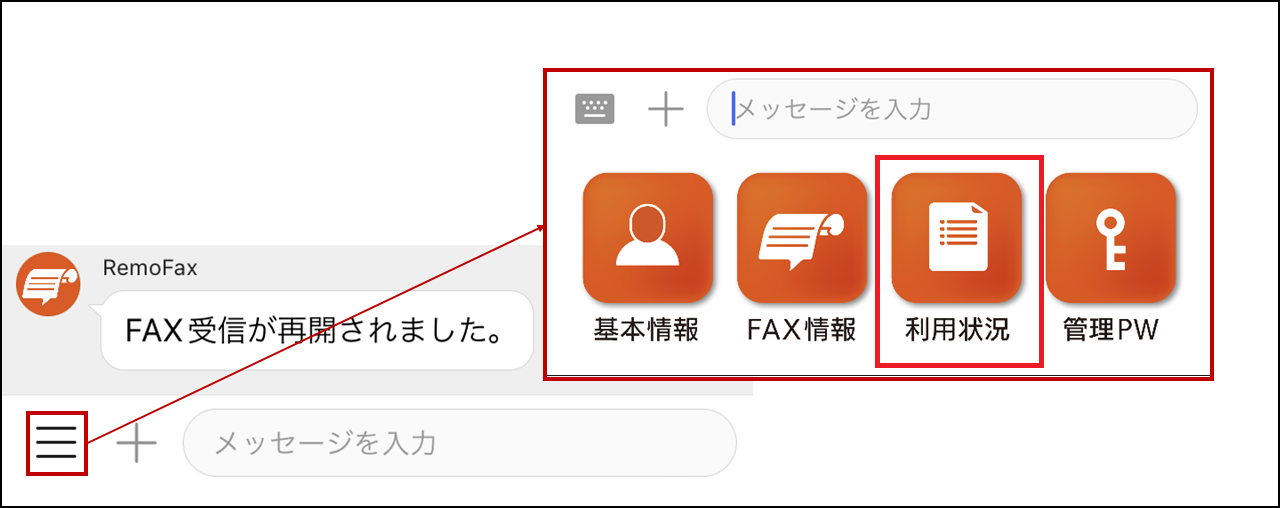 メニュー>ご利用状況ページで現在の受信数、受信可能残数、選択中のプランが確認できます。
