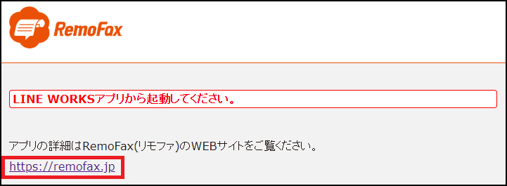 PCもしくはモバイル端末からWEB検索を行った際に、(http://remofax.cloud)を検索した場合に表示されるエラー画面です。