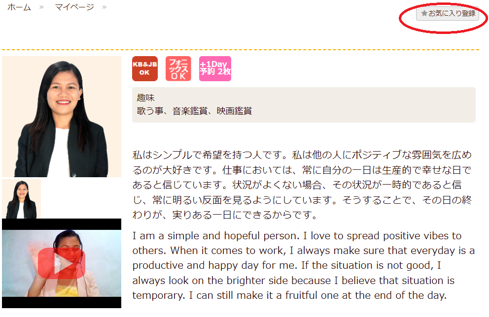 ■方法2: 講師ページよりお気に入り登録/解除を行う