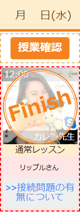 レッスン中に5分以上の不具合が発生した場合、「接続問題の有無について」ボタンからチケットを取得してください。